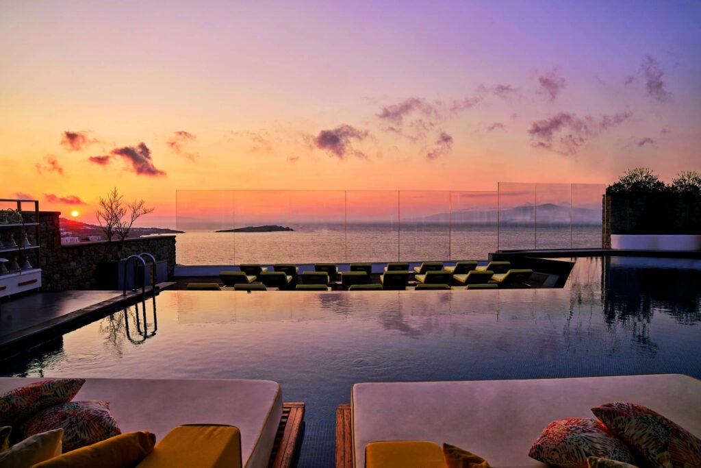 Another advantage is its location. Nestled above Mykonos Town, it provides sweeping views of the sea while remaining within proximity to the island’s vibrant nightlife, shopping, and cultural attractions. Guests can seamlessly transition between quiet relaxation and exciting exploration.